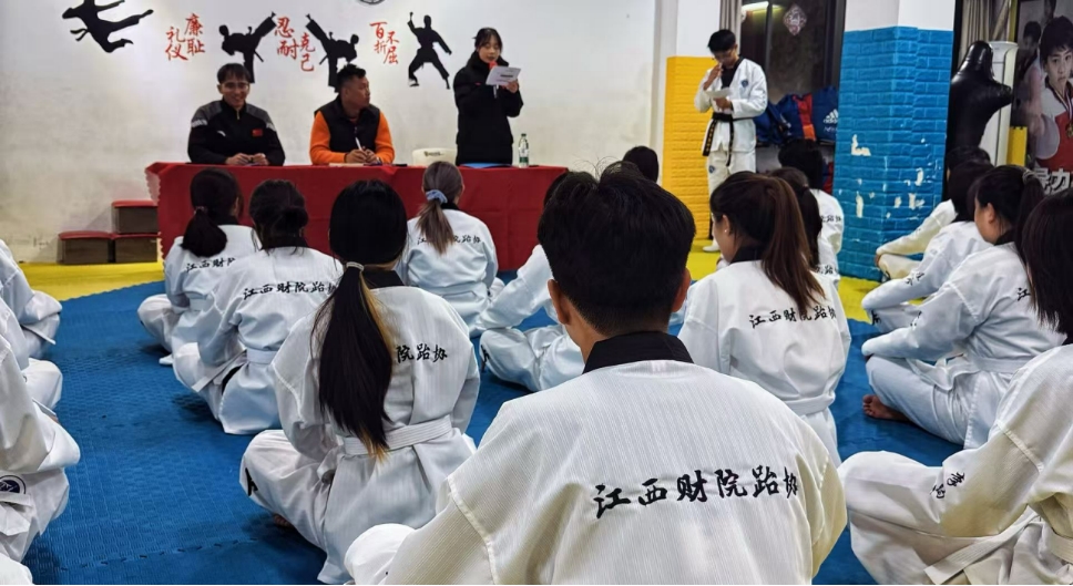 2025年11月29日,由江西财经职业学院基础教育学院主办、跆拳道协会承办的首届跆拳道交流赛在浔阳校区跆拳道训练基地圆满结束,来自八里湖校区、浔阳校区的30余名社团成员齐聚一堂,以拳为媒、以腿会友,在12个竞赛小项中展开巅峰对决,用汗水诠释跆拳道精神的真谛。
